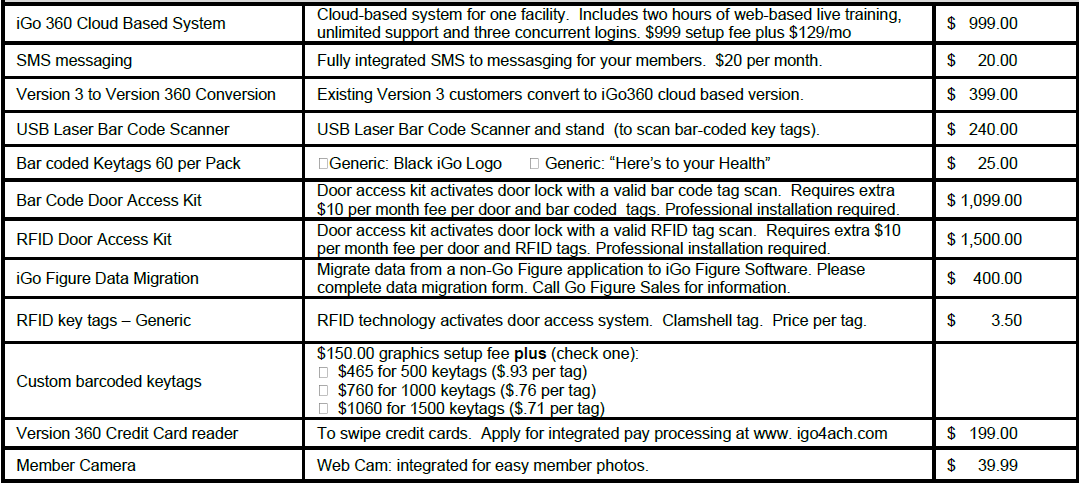 Price includes 3 concurrent users. Additional concurrent users at an additional fee. Hardware may be returned for refund less 15% restocking fee and shipping 30 days after purchase if undamaged. Contact your account representative for details and questions. Click here to schedule a demo or contact our sales team for more details: sales@igofigure.com or call 866-532-9588